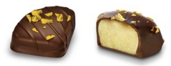 フルーティーなオレンジのマジパンをダークチョコレートでコーティングし 、カリカリのオレンジ片をトッピングした大人の味わい。