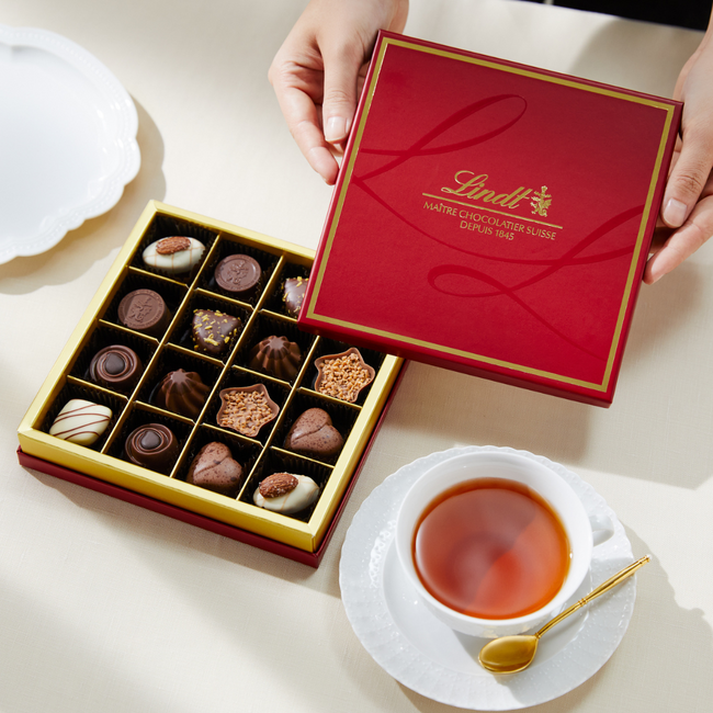 高級感のあるバーガンディーレッドのパッケージには、リンツの「L」と「なめらかなチョコレート」を表現したデザインを施し、贅沢で優雅な雰囲気を演出。メートル・ショコラティエの技術が引き出す高品質な素材の豊かな風味と、リンツのなめらかなチョコレートが見事に調和した特別な逸品を、大切な人への贈り物にぜひご活用ください。