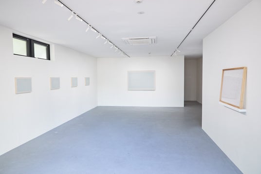 本展「忘れ水」では、未発表の新作シリーズ《描かないためのエスキース》から1点展示をするほか、井上の代表作である直線を反復して描くことによって方眼紙のようなイメージを描き出すシリーズ「スフ」と刺繍の線が紙の表面・裏面を行き来する「表と裏のためのドローイング」を展示いたします。