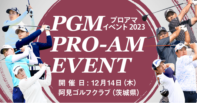 パシフィックゴルフマネージメント株式会社(本社:東京都台東区東上野/代表取締役社長 田中 耕太郎、以下「PGM」)は、日頃の感謝を込めて、PGM Webユーザーを対象とした『PGMプロアマイベント2023』(以下『本イベント』)を2023年12月14日(木)に阿見ゴルフクラブで開催します。本イベントはPGMゴルフ場で「withGolf」を行っているPGMサポートプロと一緒に18ホールラウンドしながら、途中ホールでPGMスポンサーシップ契約プロのショットが間近に見れ、交流もできる、特別なイベントです。