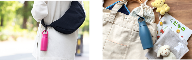 カラビナ付きなので、身軽でいたい運動時でも邪魔にならず、十分な水分補給が可能です。
