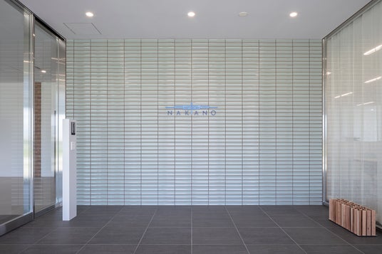 新工場の顔となるエントランスでは「信楽焼タイル」張りのアクセントウォールが人々をお迎えし、地域と共生する企業姿勢を表現しています。その他にも、エントランス内の壁には、現工場の外壁に使用されているレンガを移植し、デザインの一部に組み込みました。長きに渡り高品質・高い安全性を誠実に追求してきた志を継承しています。
