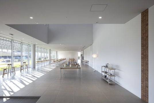 食堂・事務所の南面は全面ガラスのため前庭を望むことができ、季節の変化を感じられる憩いの空間です。美しく働く従業員のために更衣室やトイレなどの毎日使用するアメニティスペースも十分なスペースを確保し、すべての従業員が働きやすい環境づくりを目指します。開放感があり、リフレッシュしながら働くことができる空間で、従業員一人ひとりの新たな発想を期待します。