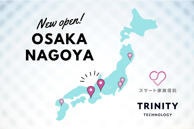 「スマート家族信託」などを提供するトリニティ・テクノロジー株式会社(所在地:東京都港区、代表取締役:磨 和寛、以下当社)は、大阪支社・名古屋支社を新たに開設し、関西・東海地方における事業展開に取り組みます。当社は全国で6つ(東京本社・仙台・横浜・名古屋・大阪・福岡)の拠点より、家族信託等の全国的な普及に取り組みます。