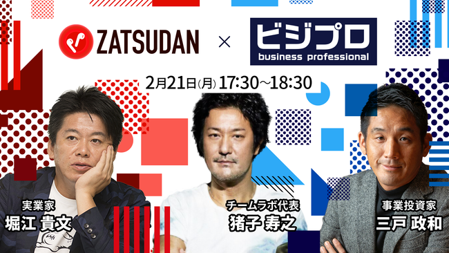 株式会社ZATSUDANは、2022年2月21日(月)に『InterFM「ビジプロ」(InterFM897で放送中の人気番組)』と共同で、新進気鋭の起業家をゲストに迎えた豪華対談イベントを開催します。