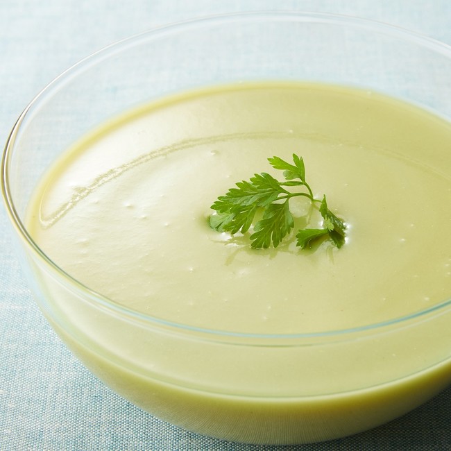 甘みと旨みのバランスが良い国産のトマトピューレーに、北海道産生クリームを加え、優しい味わいに仕上げました。クリーミーな味わいの中にトマトの程よい酸味が広がり、食欲がないときでもさらっと飲める、夏にぴったりの冷製ポタージュです。