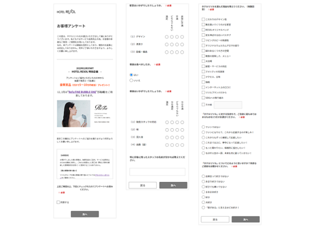 ホテル運営事業やゴルフ場運営事業をおこなうリソル様は、ホテルの宿泊者向けアンケートを、アンケート・フォーム作成システム「WEBCAS formulator」を使用して作成されています。