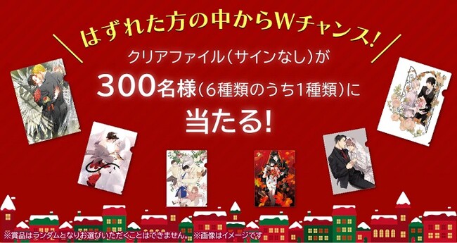 上記の抽選に外れた人の中からさらに抽選で、クリアファイル(サインなし)が300名様に当たります!