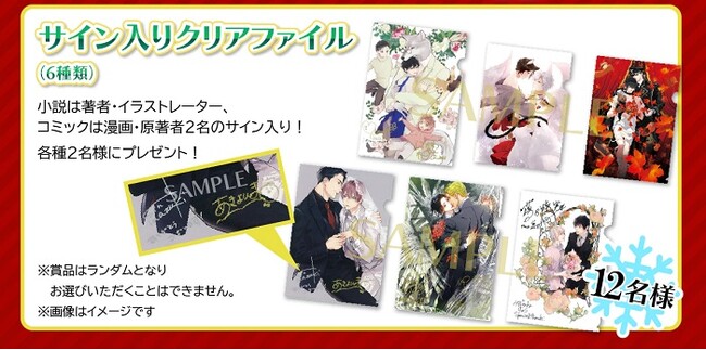 小説は著者様・イラストレーター様、コミックは漫画家様・原著者様と各作品2名のサインが入った超貴重なオリジナルクリアファイル!!(全6種類)