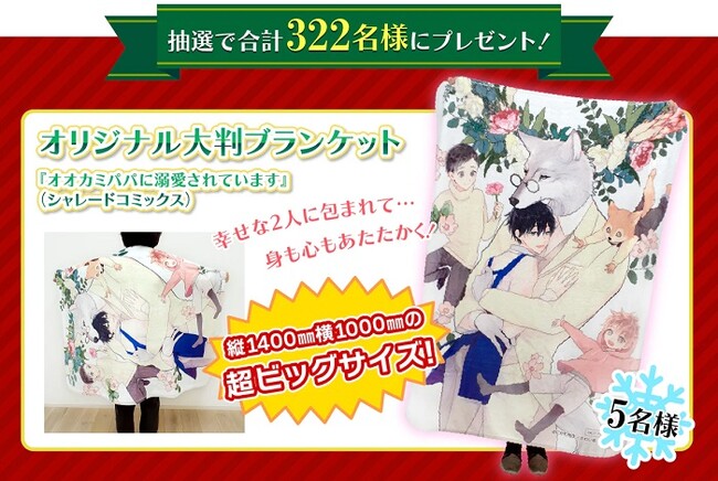 『オオカミパパに溺愛されています』(著:にかわ柚生 原著:かわい恋)のブランケットを抽選で5名様へプレゼント!縦1400mm、横1000mmの超ビッグサイズ!
