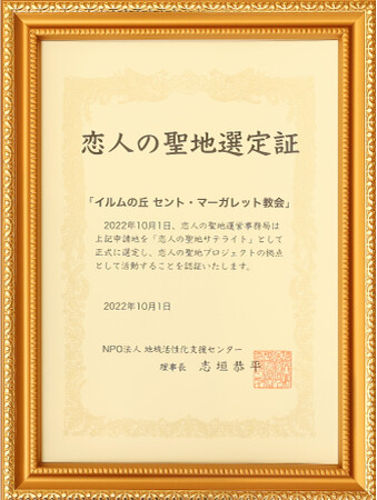 イルムの丘 セント・マーガレット教会(所在地:北海道深川市音江町音江777)が、この度「恋人の聖地サテライト」に認定されます。