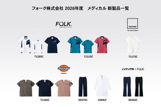 ユニフォームメーカー、フォーク株式会社(本部:東京都千代田区、代表取締役:小谷野淳)は、メディカルウェアのFOLK(フォーク)より2026年の新作を発表しました。