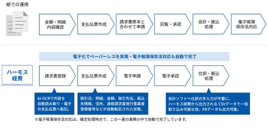 現在、紙で運用している場合、「ハーモス経費」を導入することで、請求書支払業務のフローが以下のように変わります。