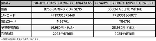 intel B760チップセット搭載、PCIe x16 Gen5 対応 GIGABYTE ゲーミング ATX DDR4 マザーボード「B760 GAMING X DDR4 GEN5」およびintel B860チップセット搭載、AORUS ゲーミング Micro-ATX マザーボード「B860M AORUS ELITE WIFI6E」の2製品を2025年6月6日(金)に発売いたします。