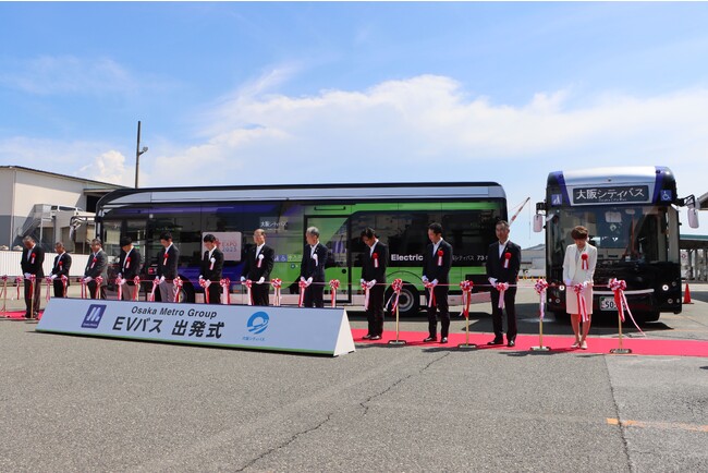 株式会社 EV モーターズ・ジャパン (本社:福岡県北九州市、代表:佐藤 裕之) は、大阪市高速電気軌道株式会社様(本社:大阪府大阪市、代表:河井 英明)へ、大型EVバスを納車し、この度、出発式(主催:大阪市高速電気軌道株式会社様・大阪シティバス株式会社様)が執り行われました。