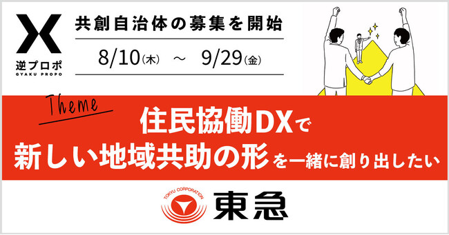 株式会社ソーシャル・エックス(本社:東京都渋谷区、以下「当社」)が提供する、官民共創による新規事業開発プラットフォーム「逆プロポ」(https://gyaku-propo.com/)を活用し、東急株式会社(本社:東京都渋谷区、以下「東急」)が、住民協働DXで新しい地域共助の仕組みを検討する実証実験に、一緒に取り組んでくれる自治体の募集を開始しましたのでお知らせいたします。