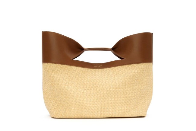 アレキサンダー・マックイーンのシグネチャーでもある、異なる素材の組み合わせや、パッチワークにインスピレーションを受けた、レザーとラフィアの組み合わせや、レザーとデニムを用いたアイテムも登場。