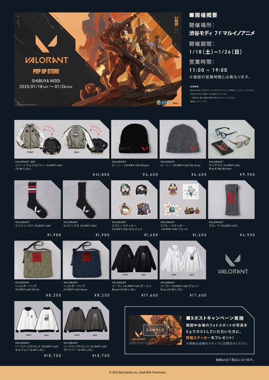 エンターテインメント関連商品を輸入・製造販売するインフォレンズ株式会社(本社︓東京都中央区、代表取締役CEO︓安川 洋)は、Riot Games, Inc.(米国)の日本法人である合同会社ライアットゲームズ(港区六本木、社長/CEO:藤本 恭史)が運営するタクティカルFPS「VALORANT(ヴァロラント)」のPOP UP STOREを渋谷MODIで2025年1月18日(土)から1月26日(日)の期間限定で開催することを発表します。