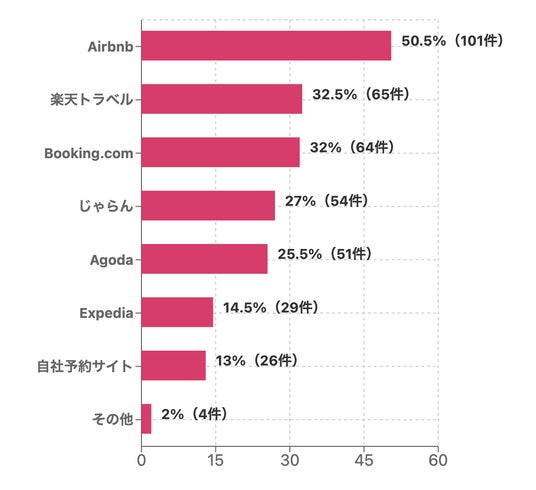 調査結果:Airbnbが半数超でトップ、国内・海外OTAが続く