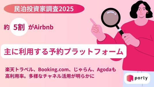 空き家マッチングアプリ「porty(ポルティ)」を運営する株式会社ポルティ(本社:神奈川県川崎市、代表取締役:平 瑶平)は、民泊投資家200名を対象に、主に利用している予約プラットフォームに関する調査を実施しました。