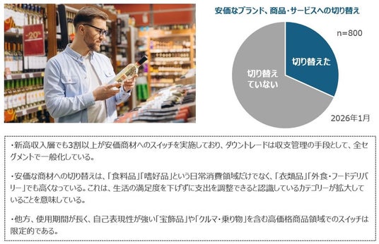 ●消費支出の推移 ●低価格商品へのスイッチ状況 ●購買決定要因
