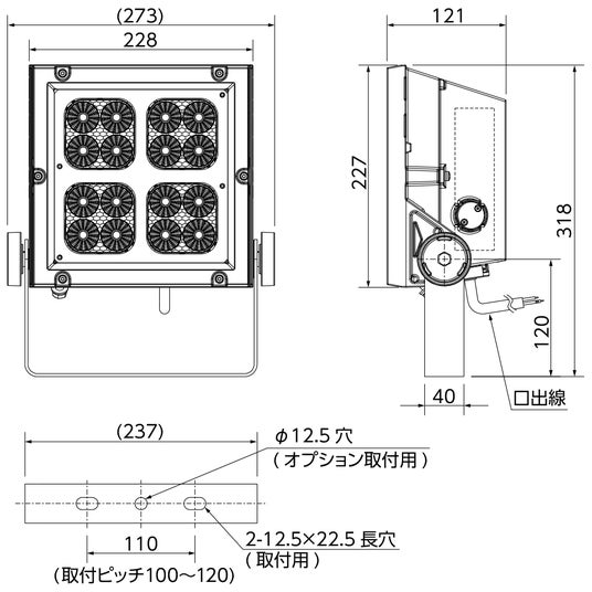 懸垂幕やライトアップ、工場・倉庫のサイド照明など、多様な環境でご使用いただけます。