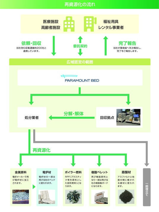 パラマウントベッド株式会社 (本社:東京都江東区、代表取締役 社長執行役員:木村友彦、以下「当社」)は、サーキュラーエコノミー(循環型経済)の実現に向けて、これまで継続して取り組んできた資源の効率的な再生利用と廃棄物の適正な処理に関する活動を、「RE-BED project」と名付け、本格始動いたします。