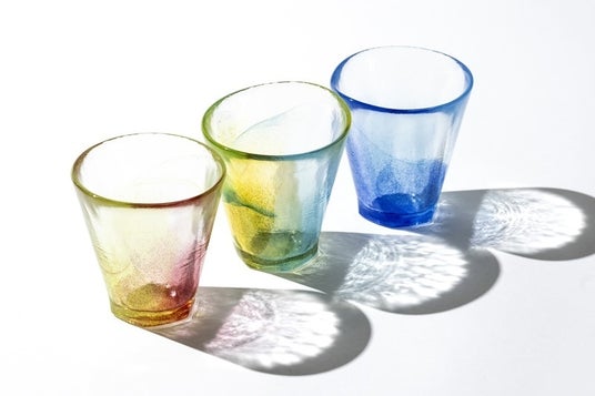 底が六角形で口が円形の一風変わった形で、かき氷のシロップカラーのタンブラー。東京都指定伝統工芸品・江戸硝子です。今では数少ない東京のガラス工場でひとつずつ作り上げています。江戸硝子 六角タンブラー