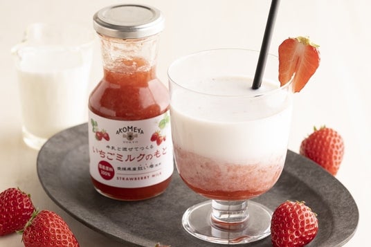 愛媛県産のいちご「紅い雫」を100%使用した「いちごミルクのもと」希釈タイプでお好みの濃さでお楽しみいただけます。いちごミルクのもと 908円