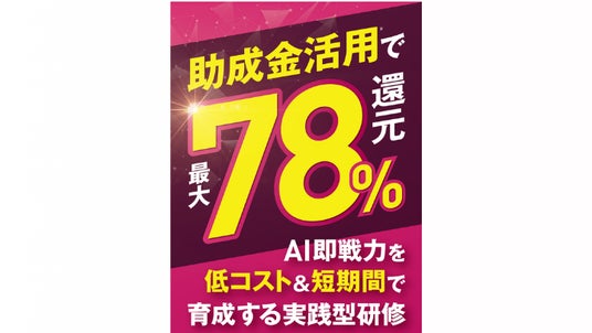 ※本研修プログラムは、厚生労働省の「人材開発支援助成金(事業展開等リスキリング支援コース)」の対象となります。この助成金を活用することで、中小企業の方は最大78%の助成を受けることが可能です。