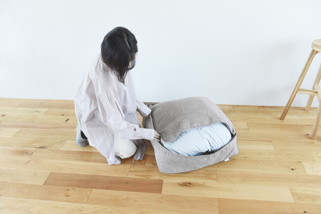 使わない羽毛布団をクッションとして活用できる「掛け布団収納ケース」に、機能性素材「ミューファン(R)」を使ったハイエンドモデルが新登場。bon moment luxeより、2/1(水)発売。