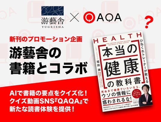 コラボ企画の第1弾として、游藝舎の書籍『ひねくれトレーナーが教える本当の健康の教科書』を基に、AIを活用してクイズを作成し、『QAQA』で展開します。BLOCKSMITHは、この新しい出版社とのコラボ企画を通じて、書籍をクイズ形式で楽しめる機会を提供し、読者に新たな価値を発見してもらうことを目指しています。今後も、書籍コラボ企画に賛同する出版社を募集し、さらなる展開を図っていきます。
