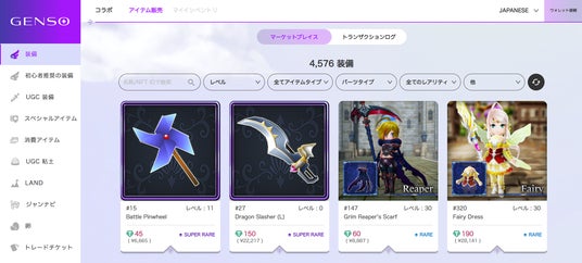 公式NFTを購入するだけでなく、ゲーム内で鍛えた装備や手に入れたアイテムを、ご自身でマーケットに出品したり、逆に他のユーザーからNFTを購入するCtoCの取引も可能です。