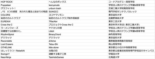 【総合大賞セミファイナルに進む30作品】(※エントリー順。学校名は代表者所属)
