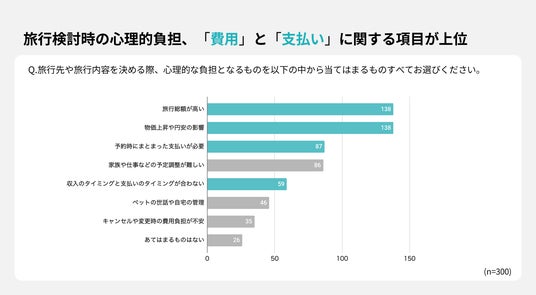 ・旅行検討時の心理的ハードルは「旅行総額が高い」「まとまった支払いが必要」など、費用・支払いに関する項目が上位