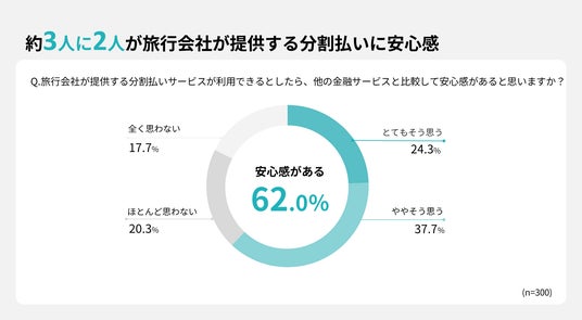 約3人に2人(62.0%)が旅行会社が提供する分割・後払いに安心感があると回答しました。