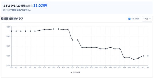 2月は「値上がりが止まっただけで、相場のベースラインは高いまま」という状況でしたが、3月はそこからさらに一歩進み、セールや販売調整による実質的な値下げが相場に反映された月だったと言えます。これまで相場上昇を牽引していたハイエンド帯まで明確に下落へ転じた点は、市場の過熱感がやや落ち着き始めたサインとして注目すべき動きです。