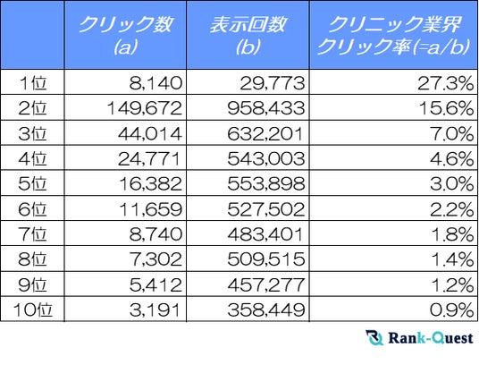 https://rank-quest.jp/column/column/how-to-seo/ SEO支援4,300社を誇るランクエストがクリニック業界1位~10位のCTRデータを分析