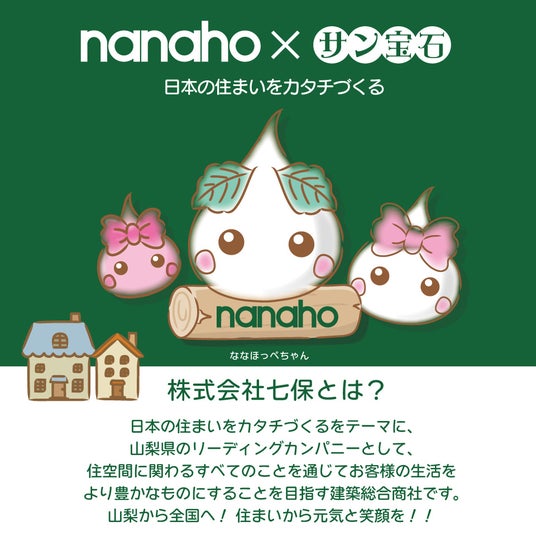 「住空間に関わるすべてのことに。」というnanahoの理念のもと、サン宝石はキャラクターを通じて地元から全国へ広がる社会貢献モデルの創出を目指します。