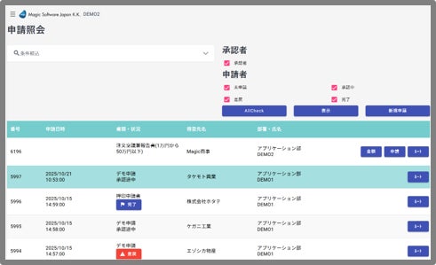 - 初期画面による承認状況の一覧表示