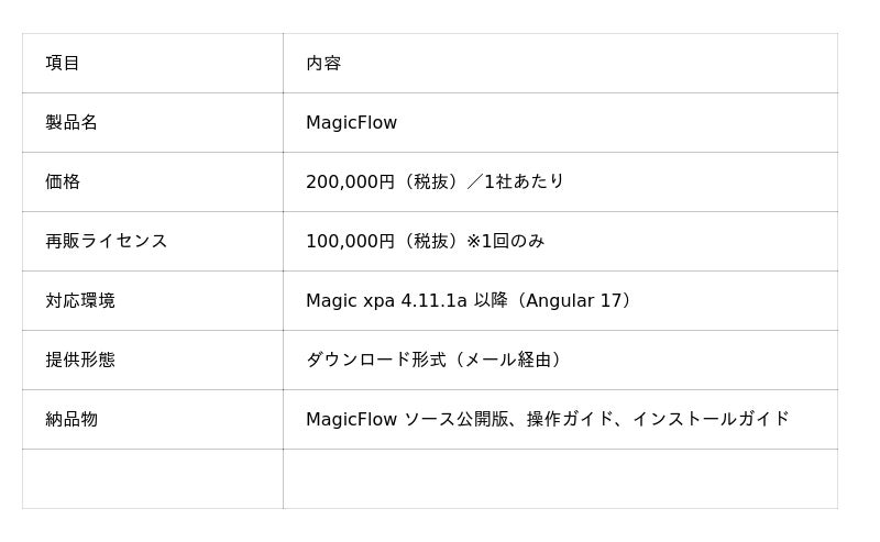 なお、本製品は Magic xpa の開発者ライセンスをお持ちの方向けに提供される、Magic xpa を活用した開発を支援する関連製品です。