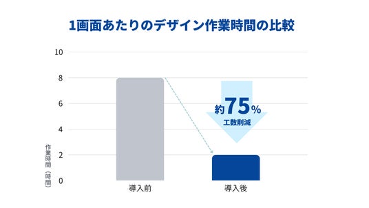 ある国内地方銀行におけるプロダクト開発事例では、短期間・低予算でUIUXに優れた店頭用のタブレット端末の開発を必要としていました。従来は1画面あたりのデザイン作業に約4~8時間を要していましたが、アジケ独自の店頭タブレット用デザインシステムを導入したデザイン作業により、1~2時間まで短縮。約75%の工数削減を実現しました。その結果、短期間でUIUXに優れた一貫性のあるプロダクトをデザインすることができました。