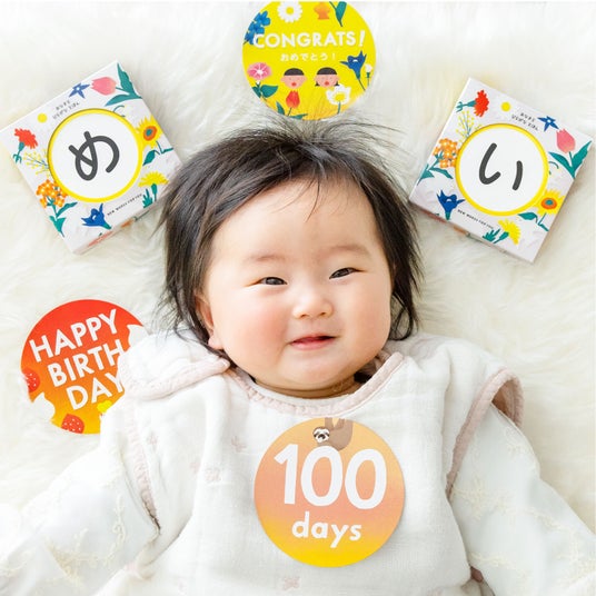 名入れやオーダーメイド商品のように、赤ちゃんの“なまえ”で贈ることで特別感たっぷりの贈り物になります。男女問わず喜ばれる可愛いデザインで、0歳からの月齢フォトの装飾にしたり、ひらがなに興味を持ち始める4・5歳ぐらいまでのお子様がパパ・ママとまねっこして遊んだり、長くご活用いただけるように趣向をこらしました。“なまえ”をきっかけに新しい言葉の世界を広げ、遊びながらひらがなを学ぶことができます。出産祝いの贈り物としてもお選びいただけるように、Web限定でおくるみ・マンスリーとのセットもご用意しております。