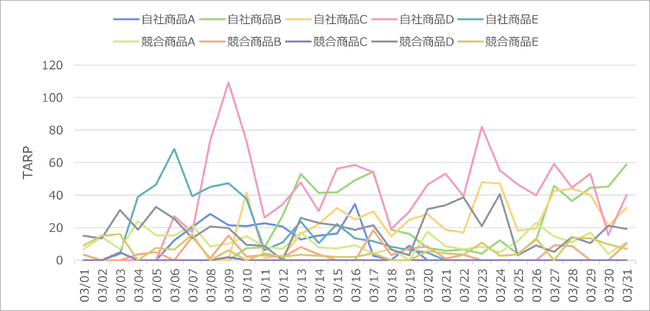 ・自社と競合商材について、以下のデータを算出 ・個人GRP、リーチ&フリークエンシー、ターゲットヒートマップ等
