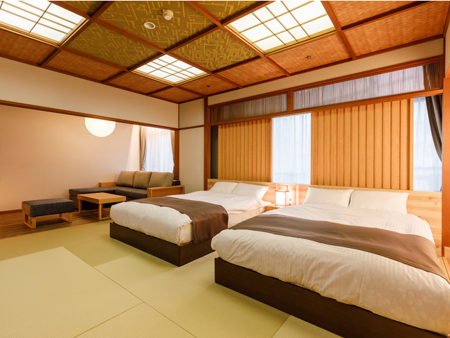 1月に改装した「月の棟」和洋室にも、さらに4室が追加されオープンします。居心地のよい和室にゆとりあるダブルサイズのツインベッドを配置。さらにオットマン付ソファーを備えた、快適な客室へと生まれ変わりました。