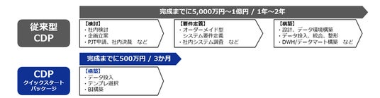 一般的に、CDPの構築は、高コスト(数千万単位)で納期が長く(1年以上)、専門スキルを持つ人材の準備(エンジニア等)が必要となります。さらにCDP導入後に使いこなせるかの不安もあり、CDPの必要性は理解しているものの、具体的な検討や導入に踏み出せていないケースが散見されます。