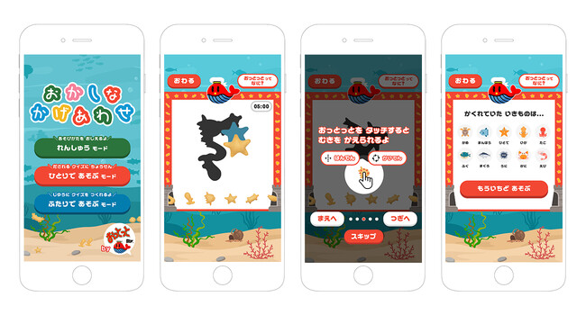 かたち合わせというパズル的なコンテンツ体験によって、未就学児の集中力・想像力・論理的思考などの非認知能力の向上を促すことができ、楽しみながら学べる知育コンテンツとしてもお役立ていただけます。また二人で遊べるモードを搭載しているため、ゲームを通して親子や兄弟間で遊びながらコミュニケーションを深めたり、子どもの理解度を見ながら難易度の調節を行うことも可能です。
