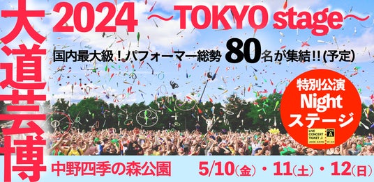 GW明けの2024年5月10日(金)より3日間、都心・中野四季の森公園で開催予定の大型パフォーマンス・イベント『大道芸博2024 ~ TOKYO stage ~』※入場無料 の「特別公演~Nightステージ」※有料 のメインゲストがさらに追加発表!