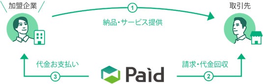 「Paid」を導入することで、加盟企業にとっては請求業務や未入金のリスクがなくなり、取引先企業はキャッシュフローが安定するメリットがあります。決済にかかる負担をなくし、取引だけに集中できる環境を「Paid」は創出しています。