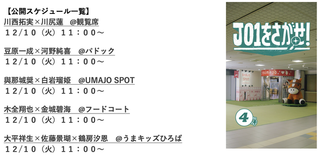 12月21日(土)、22日(日)、28日(土)は中山競馬場においてもJO1コラボイベントを実施いたします。※メンバー本人の来場はございません。